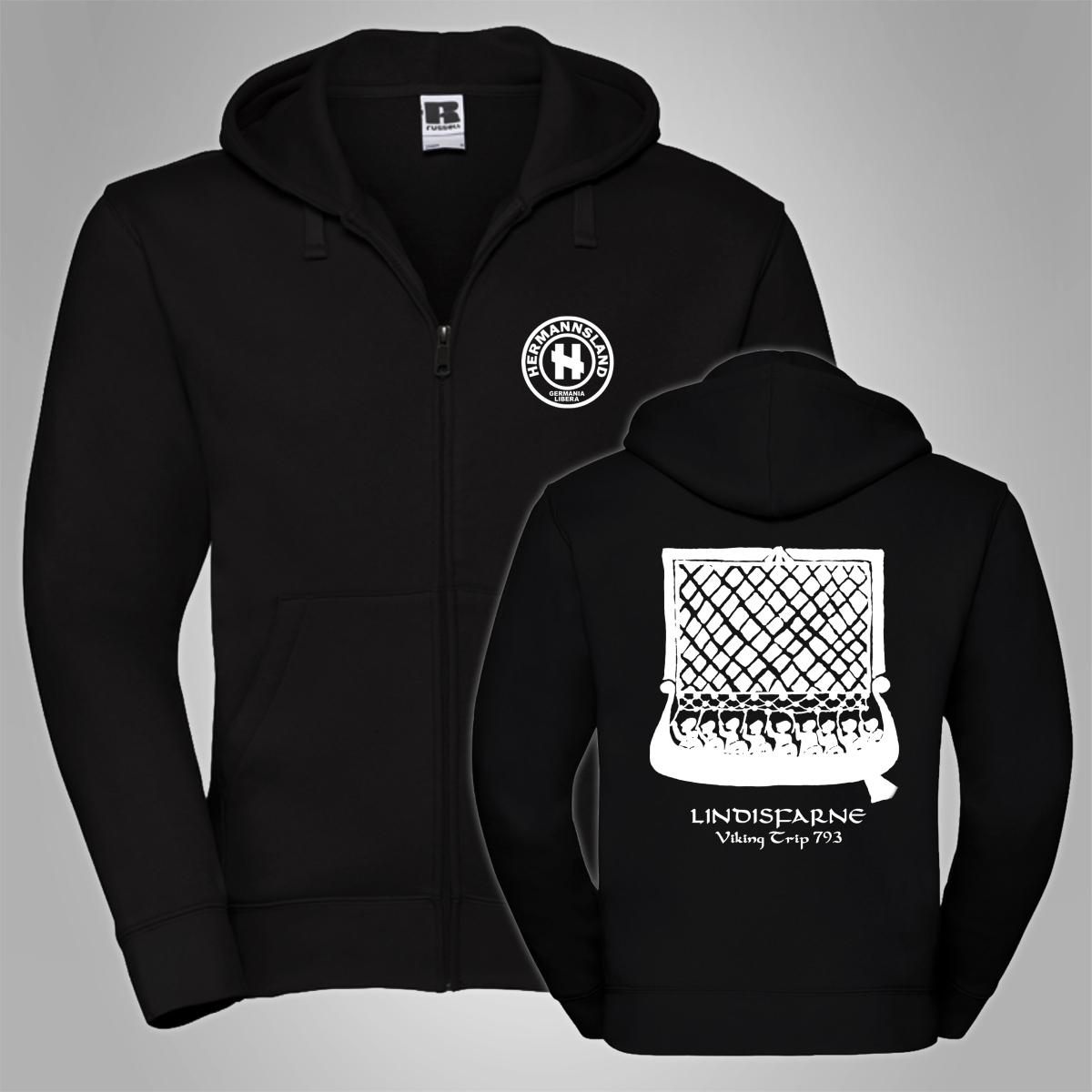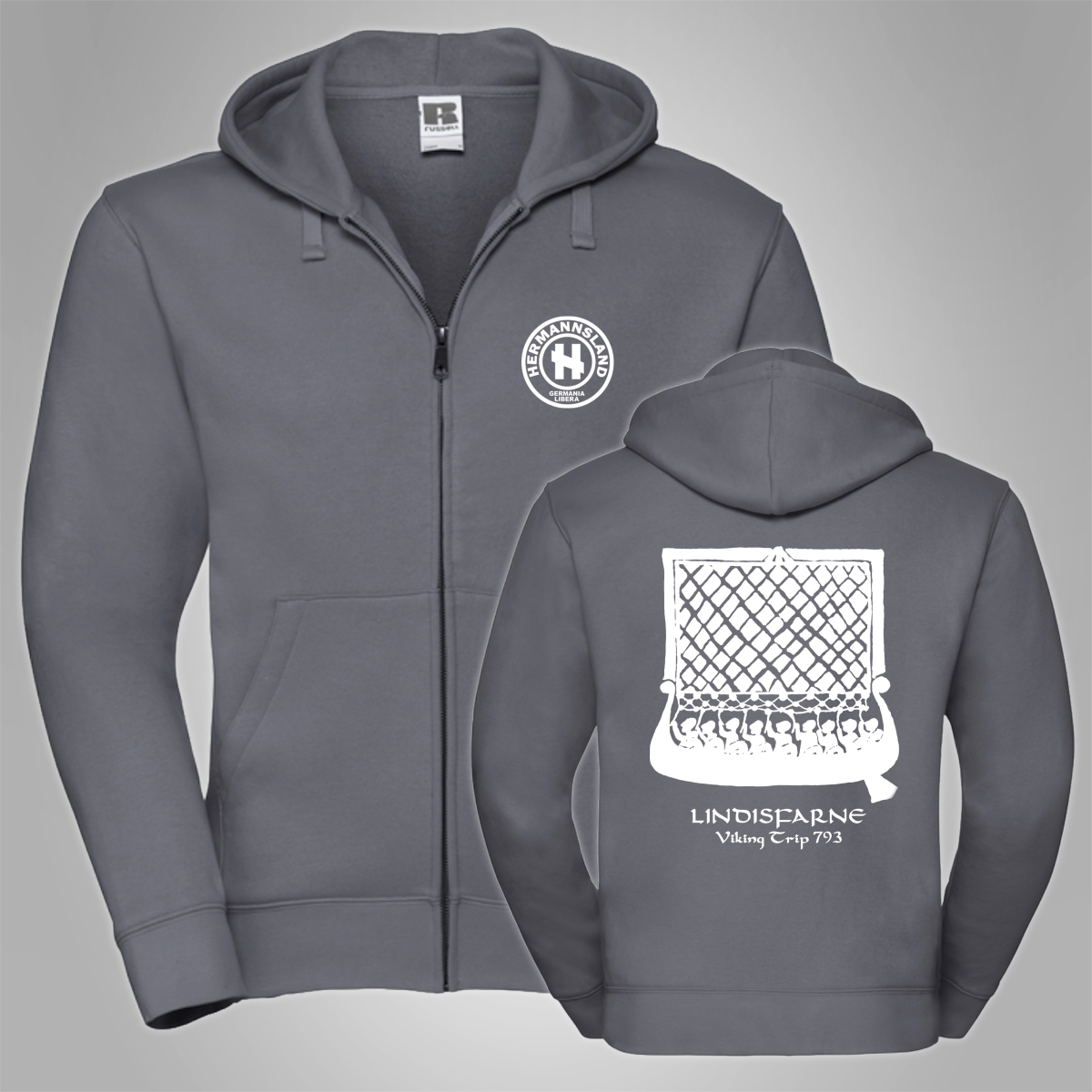 Sweatjacke mit Kapuze und Kängurutasche. Kommt mit kleinem Brust und großem Rückendruck