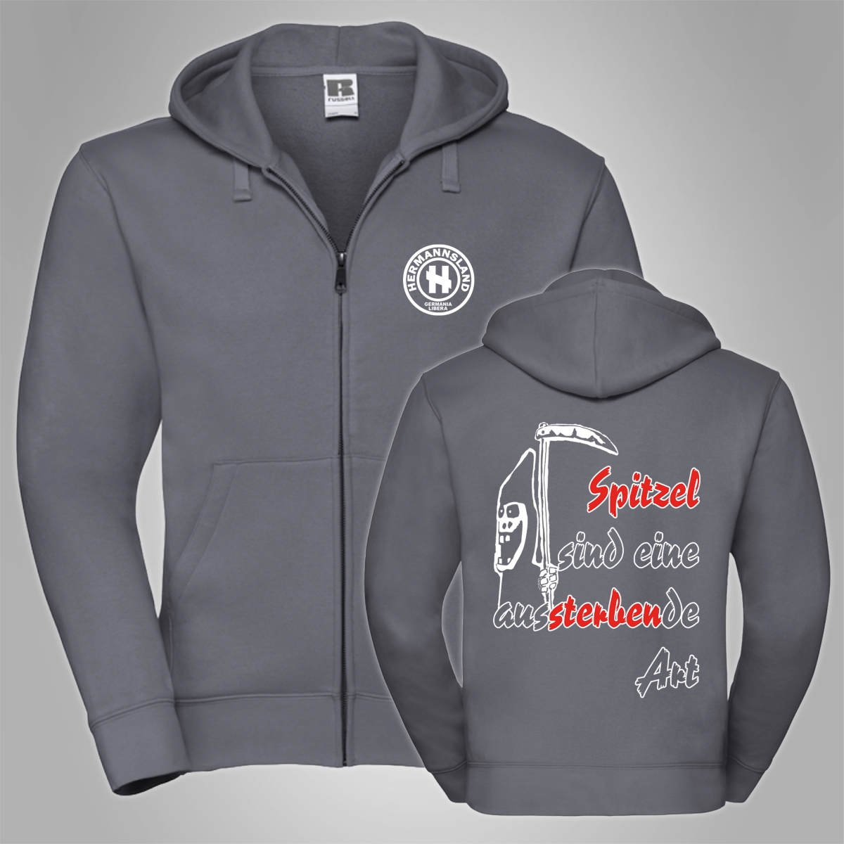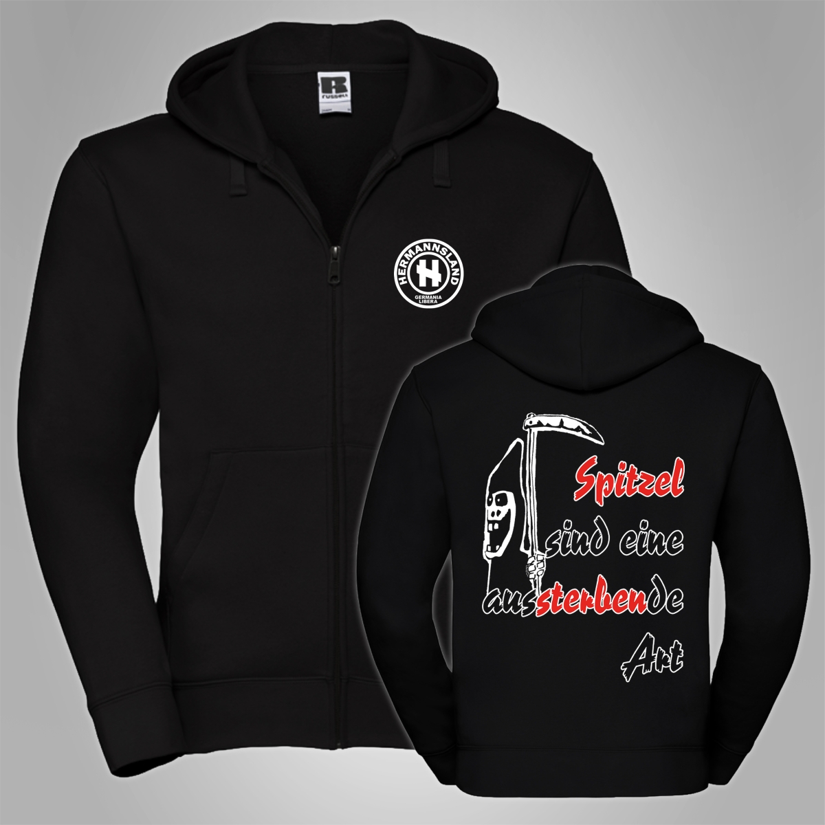 Sweatjacke mit Kapuze und Kängurutasche. Kommt mit kleinem Brust und großem Rückendruck