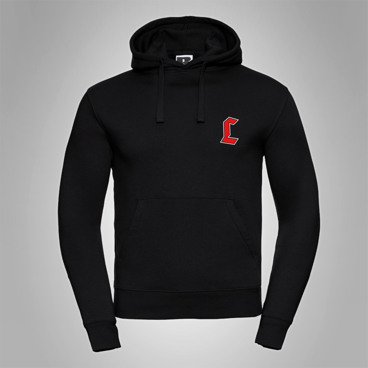 Kapuzenpullover mit aufgesetzter Tasche auf der Front und kleinen Brustdruck