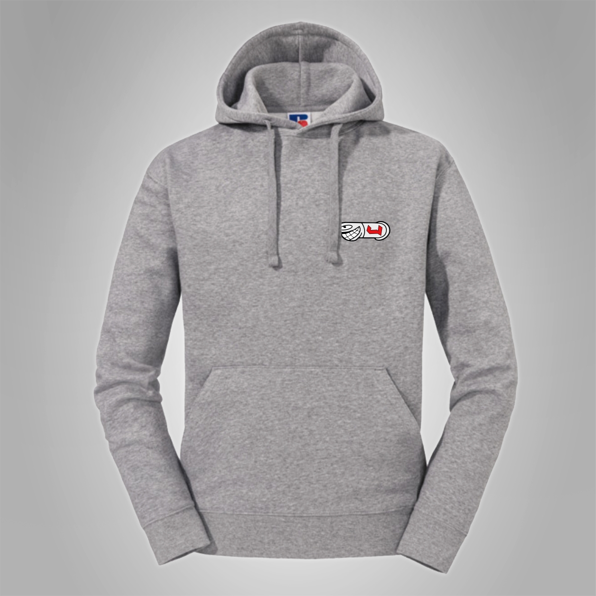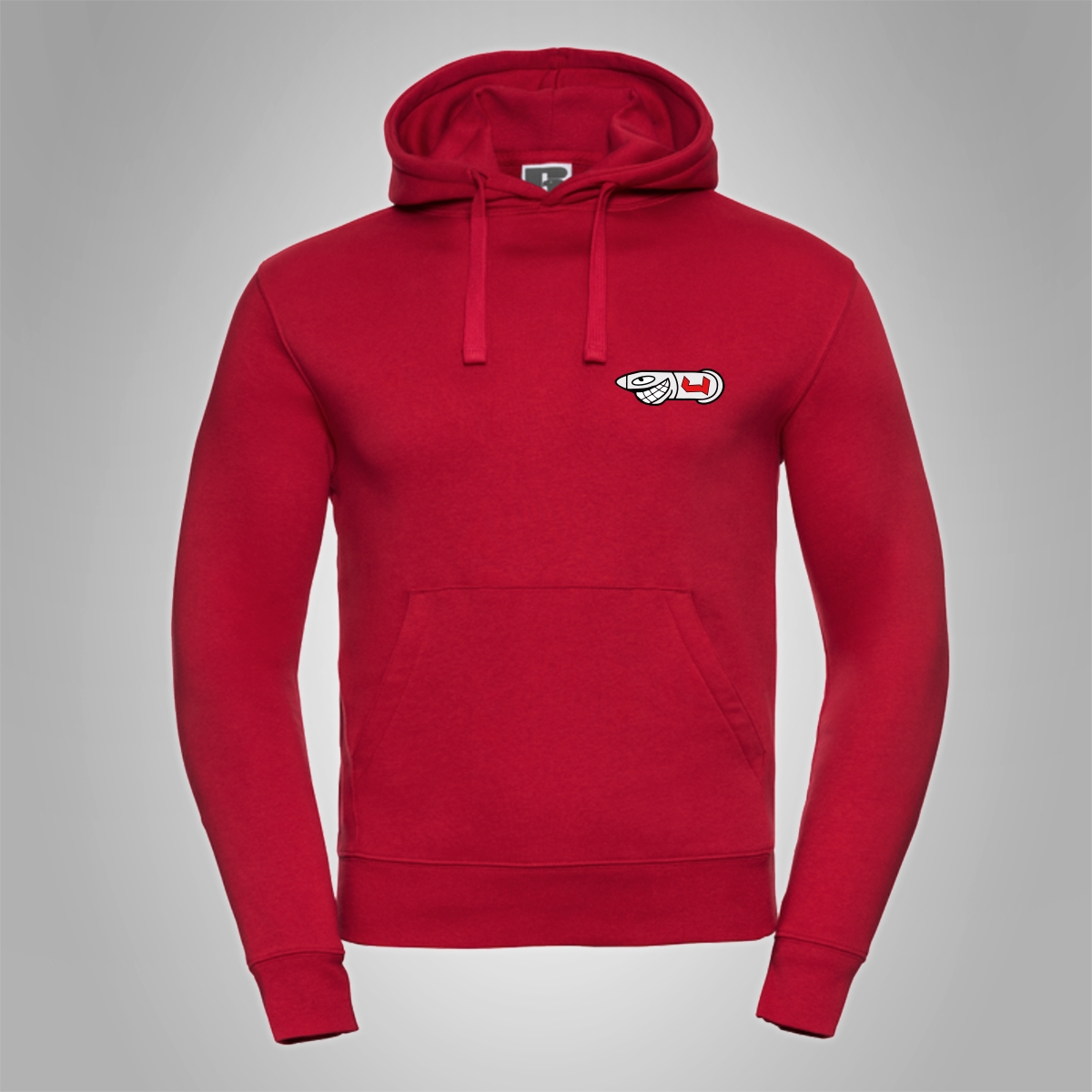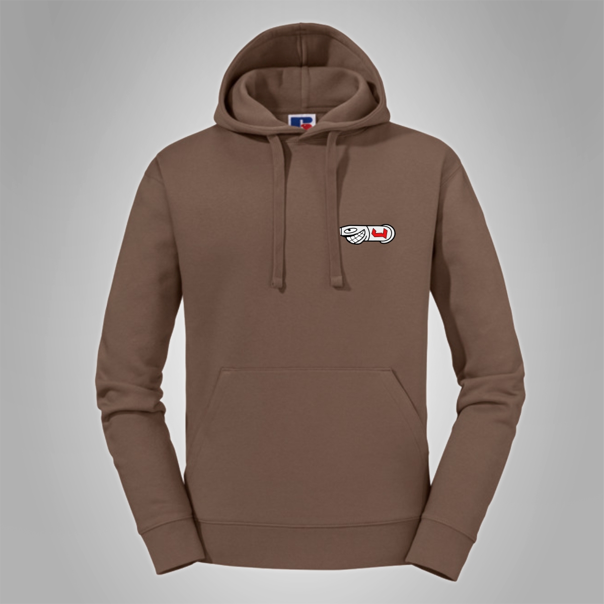 Kapuzenpullover mit aufgesetzter Tasche auf der Front und kleiner Druck auf der Brust.