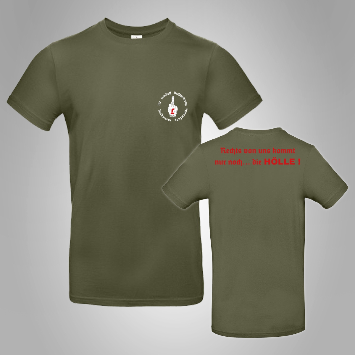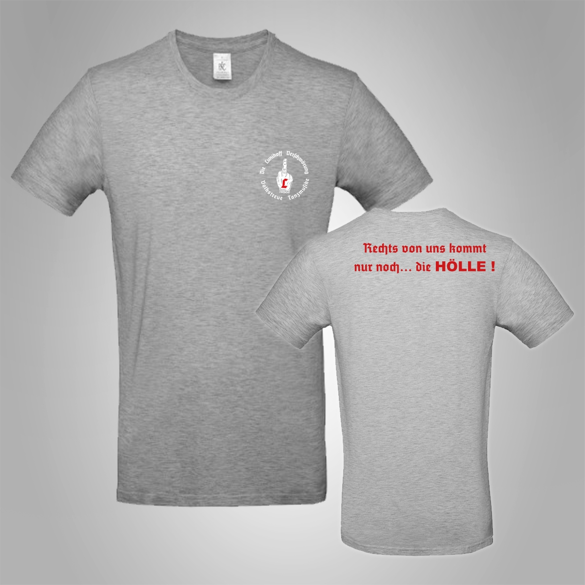 Shirt mit kleinen Brustdruck und großen Rückenschriftzug. Gedruckt auf 190er #E190 B&C Männer Shirts