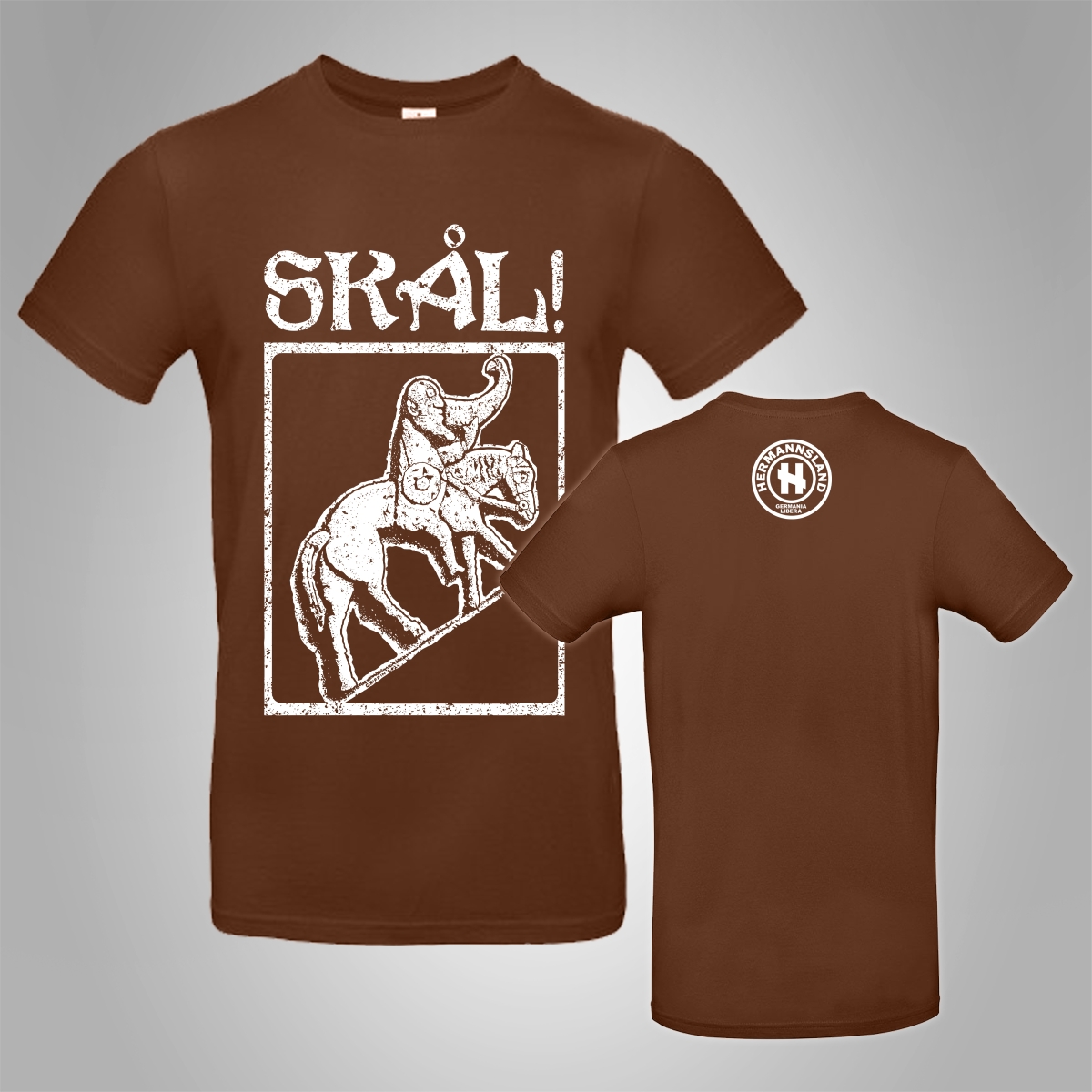 Shirt mit großen Brustdruck und kleinen Nackendruck.